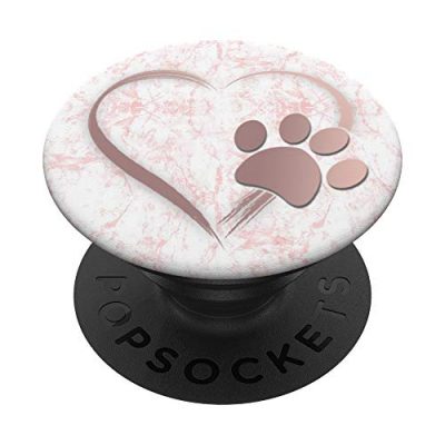 The Rose Pink Dog Paw Print Heart on White Gray Pink Hand Holder PopSockets PopGrip is a trendy and cute phone holder and stand grip that features a pretty rose pink color pattern with a paw print and heart design. It is the perfect gift idea for animal lovers, pet owners, and anyone who loves cute and adorable accessories. The PopGrip is swappable and allows you to switch out the top design or remove it completely for wireless charging capabilities. It has an expandable stand that is great for watching videos, taking photos, and handsfree calling. The advanced adhesive enables easy removal and repositioning on most devices and cases. Please note that it may not stick well to silicone, waterproof, or highly textured cases. Overall, the Rose Pink Dog Paw Print Heart PopGrip is a stylish and functional accessory for your phone or tablet.