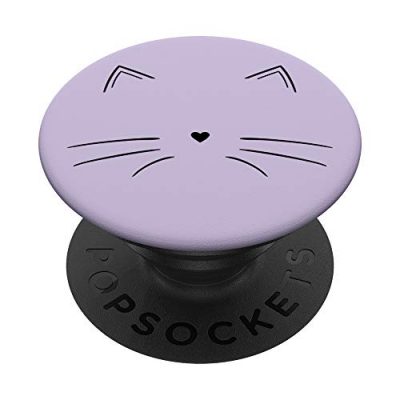 The Black Cat Face Light Pastel Purple PopSockets Swappable PopGrip is a cute and trendy mobile phone accessory that features a black kitten face on a light pastel purple print. It makes a great gift idea for girls on occasions like birthdays, Valentine's day, and anniversaries. Perfect for women and teens who love the trendy look, this PopGrip comes with a swappable top, allowing you to switch out your PopTop for another design or remove it completely for wireless charging capabilities. The expandable stand provides convenience for watching videos, taking group photos, FaceTime, and Skype hands-free. The advanced adhesive allows easy removal and repositioning on most devices and cases, excluding silicone, waterproof, or highly textured cases. Works best with smooth, hard plastic cases. Suitable for iPhone 11 but not compatible with iPhone 11 Pro or ProMax without a suitable case.