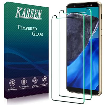 Introducing the KAREEN (2 Pack) Tempered Glass Screen Protector for Samsung Galaxy J7 2018, J7 Refine, J7 Star, J7 Crown, and J7 Aura. This high-quality screen protector offers excellent scratch resistance with a hardness level of up to 9H, protecting your phone's screen from scratches caused by sharp objects. It features a hydrophobic and oleophobic coating that reduces sweat and fingerprints, keeping your screen clean and clear. The screen protector is highly sensitive and provides exceptional clarity, preserving the original 3D touch feeling of your phone without any interference. The package includes 2 tempered glass screen protectors along with wet and dry tissues and dust removal stickers for easy installation.