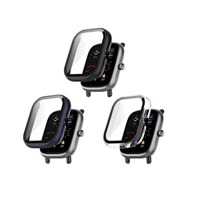 The 3 Pack Watch Case with Tempered Glass Screen Protector is designed to provide full protection for your Amazfit Bip U/Bip U Pro/Pop/Pop Pro. The durable PC case features a slim HD clear tempered glass screen protector that covers the screen and edges, guarding against scratches, bumps, and accidental drops. It offers 360-degree full protection, covering the front and curved edges of the watch. The case is easy to install and remove, with precise cut-outs and a premium smooth PC material. Available in black, blue, and clear color options. Check for any damages before application. With a customer rating of 5.0/5, this watch case and screen protector ensures the safety of your fitness tracker.