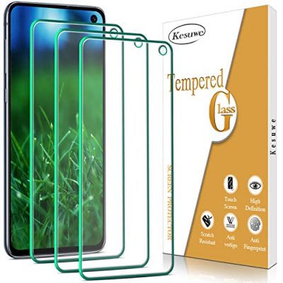 The Kesuwe 3-Pack Screen Protector is designed specifically for the Samsung Galaxy S10e. It features a 0.33mm ultra-thin tempered glass with a surface hardness of 9H, providing high durability and scratch resistance. The screen protector has a 1:1 real machine mold design, allowing for clear images and a comfortable viewing experience with 99.99% optical transmittance. It is easy to install with automatic adsorption and reduced bubbles. The protector is also case friendly and the protective film is slightly smaller than the screen, ensuring maximum protection. With an oil repellent coating, fingerprints are minimized. Overall, it offers great value and protection for your Samsung Galaxy S10e.