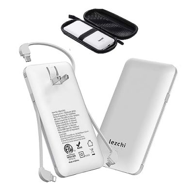 The LEZCHI Portable Power Bank is a slim and compact charging solution for all kinds of devices. With its 10000mAh capacity, it can easily charge mobile phones, cameras, and tablets while on the go. The built-in AC plug and collapsible cable make it convenient to carry around. This power bank also provides intelligent power management and various safety protections for secure charging. With a rating of 4.5/5, it has received positive reviews for its long-lasting battery and multi-device charging capabilities. The LEZCHI Portable Power Bank is an ideal travel companion for those who need to charge multiple devices without the hassle of carrying extra cables. Get this power bank and never worry about running out of battery again!