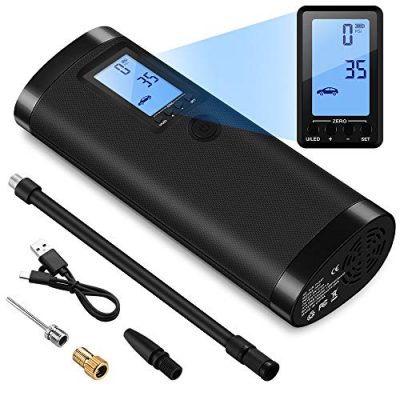 The VEEAPE Air Compressor Portable Tire Inflator is a versatile and reliable tool for inflating various items such as car, motorcycle, and bike tires, as well as balls. It features multiple functions, including three adapters and five air pressure settings for different situations. The built-in pressure gauge and preset function ensure accurate and safe inflation by automatically stopping when the desired tire pressure is reached. The portable inflator also has a large capacity lithium battery with good heat dissipation, allowing it to work continuously for 40 minutes. Additionally, it includes a bright LED light and a HD LCD digital screen for convenient use in dark places. With its compact and cordless design, as well as a memory function and 1-year warranty, this tire inflator is a handy tool for any travel or emergency situation.