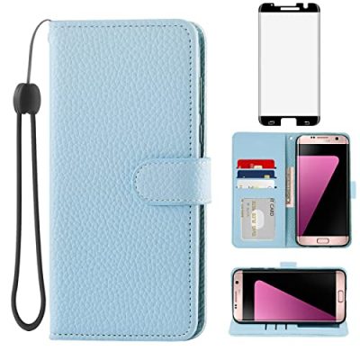The Asuwish Phone Case for Samsung Galaxy S7 Edge is a versatile and protective cell phone case that comes with a screen protector and wallet cover. Its blue color adds a touch of style to your phone. The case is specifically designed for the Samsung Galaxy S7 Edge, providing a perfect fit and full access to all controls and features. It features a folding line on the back, allowing you to convert the wallet case into a kickstand for hands-free video calls and media viewing. The hidden card slot securely stores your cards and cash, eliminating the need for a separate wallet. With soft silicone TPU and PU leather construction, this case offers dual-layer protection and a magnetic closure to keep your phone secure.