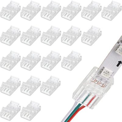 The 20 Pieces 3 Pin LED Light Connectors Strip to Wire Quick Connector is a reliable and convenient solution for connecting LED light strips. With a sufficient quantity of 20 connectors, this product meets your use and replacement needs. The connectors are made of quality PC material, ensuring durability and long-lasting performance. They are compatible with 10 mm wide waterproof or non-waterproof LED RGB light strips with a voltage range of 5-24 V. These connectors are easy to use, simply insert the LED light strip into the guide slot and press the cap down, ensuring a secure connection. They find application in various household appliances and lighting fixtures. However, some customers have reported issues with loose connections and compatibility with tightly packed LED strips. Overall, this LED strip connector provides a convenient and reliable solution for connecting LED light strips.