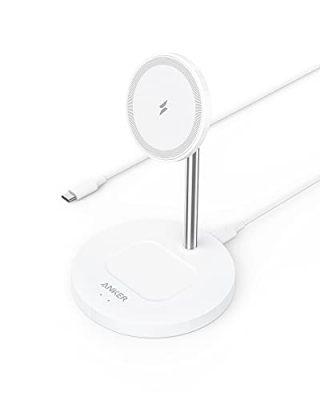 The Anker Wireless Charger is a convenient 2-in-1 stand that allows you to wirelessly charge your iPhone 13 while also charging AirPods or other earphones on the pad below. The magnetic connection securely props up your phone for easy viewing and can be adjusted up to 30° for versatile viewing angles. It is compatible with iPhone 13 and 12 series, and works flawlessly with MagSafe cases. The charger comes with a 4 ft USB-C cable and provides a solid and efficient charging experience. The stand has a sleek and sturdy design and offers the option to charge vertically or horizontally. Overall, the Anker Wireless Charger is a reliable and versatile charging solution for iPhone 13 users.