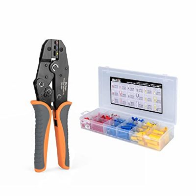 The Wire Terminals Crimping Tool by Qibaok is a professional-grade ratcheting wire crimper. Made of premium industrial grade high strength chrome vanadium steel, this tool offers good performance with rust and corrosion resistance. The precise ratcheting mechanism allows for easy crimping of wire connectors by squeezing the handle through a complete cycle. The crimping compression is adjustable and ensures uniform crimping each time. This crimping tool comes with a box of 800pcs connectors, including 27 types of wire terminals connectors. The connectors are color-coded for easy identification. With its high-quality construction and included connectors, this crimping tool provides great value for the price.