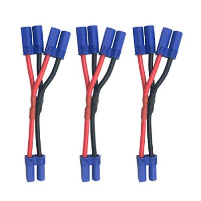 The EC5 Plug Parallel Battery Connector Cable is a convenient accessory for DJI Phantom Quadcopters, Multirotors, and RC LiPo Batteries. With this cable, you can use two batteries with the same mAh capacity to double the capacity while maintaining the same voltage to the EC5 connector on ESC/Charger. The cable features EC5 2-Male to 1-Female parallel configuration and is made with 12AWG heatproof soft silicone cable. Each cable has a wire length of 3.93 inches (10cm), and the pack includes three cables. This product offers a longer battery runtime and is compatible with various vehicles. Overall, it is a reliable and efficient solution for extending battery life.