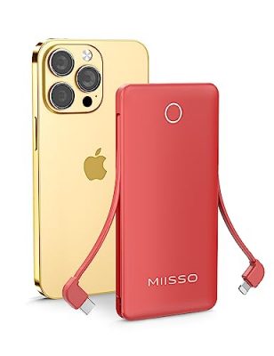 The miisso 10000mah Slim Portable Charger is a powerful and compact power bank that is perfect for everyday use and travel. With built-in cables for different devices, it eliminates the need for extra charging cables. The 10000mAh capacity provides over 2 full charges for iPhones and Samsung Galaxy phones, ensuring that you have enough power throughout the day. The slim and lightweight design makes it easy to carry in your handbag or pocket. Additionally, it features 4 outputs and 2 inputs, allowing you to charge up to 4 devices simultaneously. It is compatible with a wide range of devices including iPhones, Samsung phones, Google Pixel, OnePlus, and more. Overall, the miisso 10000mah Slim Portable Charger offers convenience, versatility, and reliable charging power.