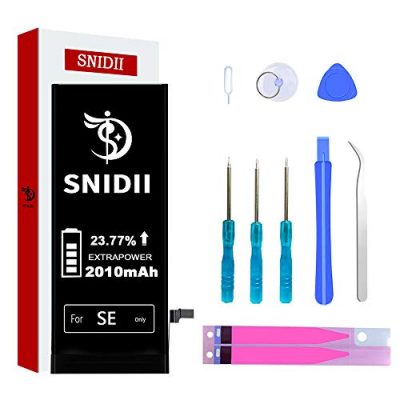 Bring life back to your iPhone SE with the SNIDII Battery. This high-capacity Li-ion polymer battery replacement offers 2010mAh, providing 23.77% more power than the original battery. With the easy installation process, complete repair tool kit, and step-by-step instructions included, you can have your iPhone up and running in no time. The battery is made with top-quality A battery cells for efficient charging and has been certified for safety with FCC, CE, ROHS, and UL certifications. Compatible with iPhone SE models A1662, A1723, and A1724, this battery ensures a longer and more reliable battery life. Customer service support, a 30-day full refund, and a 2-year quality warranty are also provided.