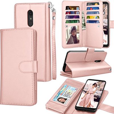 The Tekcoo Wallet Case for LG Stylo 4 / LG Q Stylus/LG Stylo 4 Plus is a stylish and functional accessory that provides protection for your phone while also offering the convenience of a wallet. Made of PU leather, the case features 11 card slots and a sleeve to store your ID, license, cash, and credit cards. It also includes a wrist lanyard for easy transportation and a built-in kickstand for hands-free video calls and media consumption. The case is designed with precision cut-outs for easy access to all buttons, camera, speakers, and connector. Additionally, the detachable magnetic hard case allows you to carry your phone without the wallet attached. With its rose gold color and user-friendly design, the Tekcoo Wallet Case is a practical and fashionable choice for LG Stylo 4 users.