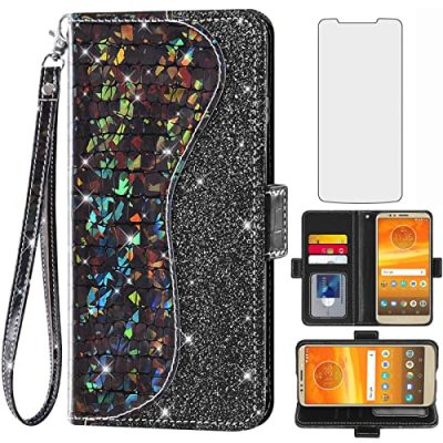 The Asuwish Phone Case for Moto E5 Plus is a stylish wallet cover designed specifically for the Motorola Moto E5 Plus, Moto E5 Supra, and Moto E Plus 5th Gen. It comes in a sleek black color and features a flip credit card holder with bling glitter stand, making it a fashionable accessory for women and girls. The case is compatible with a 6-inch screen size and includes a tempered glass screen protector and detachable wrist strap as free gifts. It also has a built-in kickstand for a comfortable viewing experience and three card slots for convenient storage of your cards and cash. The magnetic closure ensures secure and easy closure of the case. Asuwish provides excellent customer service and offers a warranty for defective products.
