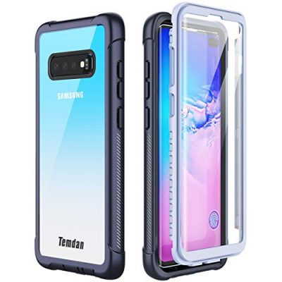 The Temdan Samsung Galaxy S10 Plus Case provides all-round protection for your Samsung cell phone. With a built-in screen protector and a thin, ultra-transparent back cover, it offers maximum protection without compromising on design. The case is compatible with wireless charging and has precise cutouts for easy access to all buttons and ports. While the built-in screen protector can sometimes affect the phone's response function, it can be removed and replaced with a separate screen protector. The case is available in a stylish blue color and fits the 6.4-inch Samsung Galaxy S10 Plus.