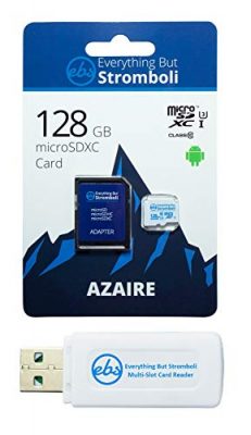 Enhance your Samsung Galaxy phone's storage with the Everything But Stromboli 128GB Azaire Micro Memory Card. This high-quality memory card comes bundled with a microSD card reader, making it a convenient and reliable accessory for expanding your device's storage capacity. With read speeds of up to 95 MB/s and write speeds of up to 55 MB/s, this Class 10 U3 UHS-1 SDXC card delivers excellent performance for quick data transfer. It is compatible with various devices like smartphones, tablets, digital cameras, game consoles, and more. The card also comes with a 1-year guarantee, ensuring a worry-free experience. Plus, it is compatible with a wide range of Samsung Galaxy phones including the A10s, A30s, A20s, A71, A01, and A11.