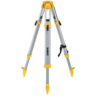 The DEWALT Tripod Stand is a heavy-duty construction tripod designed for easy transport on jobsites. With its industry-standard 5/8-inch x 11 mounting threads and flat head design, this tripod offers quick and easy setup. It has a height of 60 inches when opened and 38 inches when closed. Made from lightweight, durable aluminum construction, it provides stability on any terrain with its pointed steel feet. The built-in strap allows for convenient transport. The tripod comes in a factory color. Overall, it is a reliable and well-made tripod that exceeds expectations. However, it may be difficult to adjust the laser position with the leg adjustments, and it is not recommended for confined spaces or vertical adjustments. Rated 4.8 out of 5 by customers.