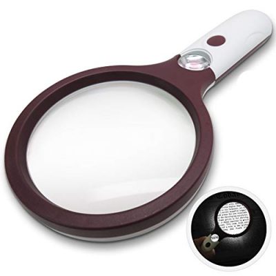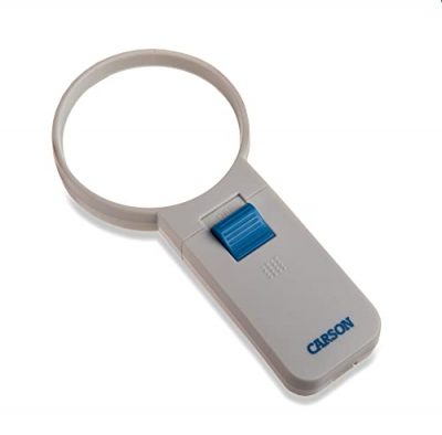 The Carson Illuminated LED Lighted 4x Hand Held 3.0'' Aspheric Magnifier (SV-40) is a versatile magnifying glass that offers increased magnification and image clarity. Its aspheric lens reduces edge distortions, making it ideal for reading fine print, viewing details on coins and stamps, model building, and other low vision needs. With an ultra-bright LED light powered by 3 AAA batteries, the viewing area is illuminated for easier visibility. This magnifying glass is especially useful for people with macular degeneration. The compact size and ergonomic design make it easy to hold and use. While it doesn't come with a case, it is easily packable. Overall, the Carson Illuminated LED Lighted Magnifier is a reasonably priced, small magnifying glass that delivers great clarity and convenience.