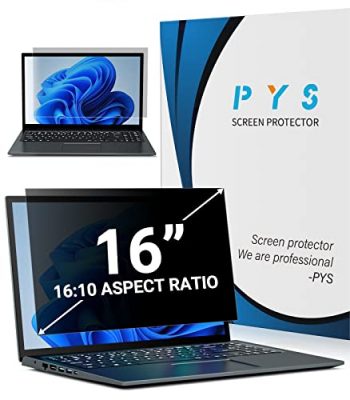 The PYS Laptop Privacy Screen is a removable privacy shield for 16-inch widescreen laptops. It provides anti-glare and blue light screen filters for eye protection, ensuring maximum privacy and a clearer visual experience. With quick and easy installation, this privacy screen is compatible with most laptop brands. It features an anti-glare surface, lightweight design, and improved visual experience in bright environments. Protect your privacy and keep your information safe when working from home or in a professional office environment.