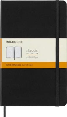 The Moleskine Classic Notebook is a high-quality, hardcover notebook designed for writing journals, taking notes, or even bullet journaling. Its slim design makes it perfect for travelers and bullet journalists. The durable cover and elastic closure keep your writing projects secure, while the inner storage folders provide additional organization. With its deluxe quality pages, the notebook is suitable for writing with various pens and pencils. Moleskine notebooks are available in a range of colors and come in either hardcover or softcover. They are designed for daily journaling, writing, and sketching. Show your dedication to culture and personal identity with Moleskine products.
