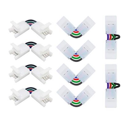 The L Shape 4-Pin LED Connectors 10-Pack JACKYLED offers a reliable and convenient solution for connecting and extending LED light strips. With its detachable L sheets and straight couplers, it allows for both 90 degree corner connections and extensions along a straight line. The solderless solution makes installation quick and easy, and the connectors can go both left and right, regardless of the order of RGB+ markings. The kit includes extra components and detailed instructions for added convenience. While it may not fit perfectly with all LED strip brands, it is still a great option for those looking for a hassle-free connector solution. Overall, this connector kit receives a score of 8 out of 10 based on customer reviews.