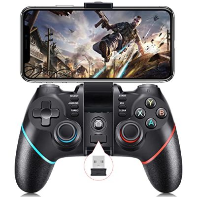 The Vbepos Mobile Game Controller is a versatile wireless gamepad that is compatible with various platforms including iOS, Android, PS4, PS3, PC, Switch, and Smart TV. It offers a wide range of features such as precise control, wide compatibility, and efficient charging. The controller comes with a 2.4G wireless receiver for playing PS4, PS3, and PC games, and it adopts Bluetooth 5.0 for faster and more stable connections. With the dual analog sticks and trigger buttons, you can enjoy a better gaming experience. The built-in rechargeable battery provides 12 hours of continuous gameplay and 30 days of standby time. Additionally, the controller features a foldable bracket to hold smartphones securely. Overall, the Vbepos Mobile Game Controller offers great performance and compatibility for gamers.