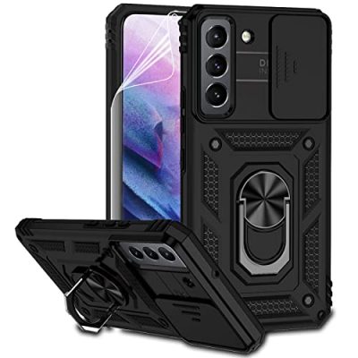 The Samsung Galaxy S22 Case with Camera Lens Cover is a durable and delicate phone case designed specifically for the Samsung Galaxy S22 5G. It features a sliding camera cover that protects the camera lens from scratches and scuffs. The case is also equipped with a military-grade double layer of shockproof protection, ensuring your phone is safe from drops and impacts. Additionally, it has a magnetic ring kickstand that allows for convenient hands-free viewing and can be easily attached to a magnetic car mount. The case comes with a PET HD screen protector and is available in black. Please note that the case is not compatible with wireless charging. Overall, it offers excellent protection, functionality, and style for your Samsung Galaxy S22.