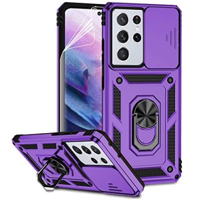 The Samsung Galaxy S21 Ultra Case with Camera Lens Cover is a durable and protective phone case specifically designed for the Samsung Galaxy S21 Ultra 5G. It features a sliding camera cover to protect the camera lens from scratches, as well as a 1.8 mm screen lip and HD screen protector for comprehensive screen protection. The case is military-grade drop tested and has a multi-layer cushion structure for shock absorption. It also has a built-in magnetic ring kickstand and metal patch for convenient viewing and mounting options. The package includes one case and one piece of PET HD screen protector. Overall, it is a reliable and functional phone case that offers excellent protection for the Samsung Galaxy S21 Ultra.