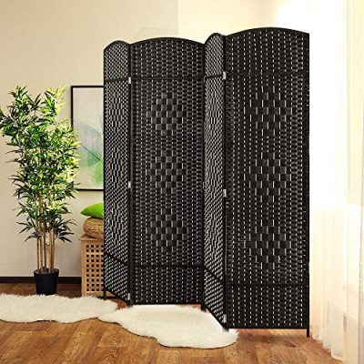 The JOSTYLE Room Divider is a 6ft. tall extra wide privacy screen designed to create a private space and add more decorating options to your living room, bedroom, or shared apartment. It features a beautiful diamond double-weave design with an elegant arched wooden frame on the top. The room divider is made of high-quality natural fiber, making it environment-friendly and safe for baby rooms. It is lightweight, foldable, and easy to move and store. With no assembly required, you can start using it right away. The brown 4-panel room divider comes with a solid wood frame and high-quality stainless steel hinges for enhanced stability and durability. Overall, it is a functional and stylish divider that provides the perfect solution for privacy needs.