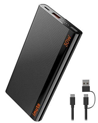 The Slim Portable Charger 30W from imuto is a powerful and compact device that provides fast charging for various smartphones. With a capacity of 10000mAh, it can charge Google Pixel phones at up to 30W, making it the first portable charger in the world specifically designed for Google Pixel smartphones. Additionally, it supports 30W super fast charging for Samsung Galaxy phones, including models like S22, S21, S20, Z Flip4, Z Fold4, Note 9, 10, and 20. The charger features both USB-C and USB-A ports, allowing you to charge multiple devices simultaneously. It also includes a built-in converter from USB-C to USB-A, making it compatible with a wide range of devices. The Slim Portable Charger 30W is lightweight and pocket-sized, making it convenient for travel. Overall, it is a versatile and reliable portable charger for Samsung and Pixel users.