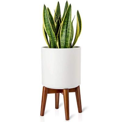 The kimisty Mid Century Gold Brass Plated Metal Planter with Stand Set of 2 is a stylish and modern option for displaying your indoor plants. With its mid-century modern design and golden decor, it adds a touch of glam to any space. The planter features a rust-resistant construction and sturdy iron legs, ensuring durability. It has a 7-inch diameter, making it suitable for medium-sized plants. The set includes two tripod stands, perfect for creating a cohesive look. The stands are collapsible for easy storage and come with protectors for the feet to prevent scratches on your floor. While some customers noted minor imperfections, overall, the plant stands are praised for their quality and attractive appearance.