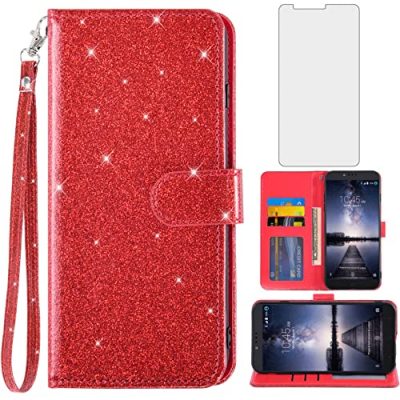 The Asuwish Phone Case is designed specifically for ZTE ZMax Pro Z981, Blade X Max Z983, Max XL N9560, Max Duo LTE, Blade X Max 2, Blade Max 3 Z986, Carry, Imperial Max, and Kirk Z963U. This wallet case offers dual-layer protection with a soft silicone TPU and PU leather construction. It features a built-in kickstand for hands-free video calls and media viewing. The hidden card slot can securely hold up to 4 cards and some cash. The case comes with a tempered glass screen protector for added protection. It provides easy access to all controls and ports. Available in red color.