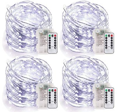 Create a magical atmosphere both indoors and outdoors with the MUMUXI Fairy Lights. This set of four battery-operated string lights is ideal for Christmas, Halloween, parties, and other festive occasions. With over 33ft of bendable and strong copper wire, you can shape these lights into any form you desire. The copper wire is durable and won't break. These string lights are 100% waterproof, making them suitable for outdoor use. They are powered by a waterproof battery box and come with a remote control for easy use. The lights are safe for children and emit a soft and beautiful light. With 8 dynamic and static modes, dimming options, and a timer function, you can easily customize the lighting to suit your mood or event. These fairy lights are the perfect addition to your indoor or outdoor decorations.