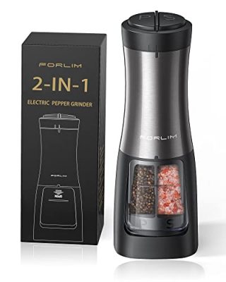 The FORLIM 2-in-1 Electric Salt and Pepper Grinder Set is a sleek and functional addition to any kitchen. With its innovative design, easy one-handed operation, and adjustable coarseness, seasoning your dishes has never been easier. The dual-bin design allows for effortless switching between salt and pepper, while the LED light provides visibility in low-light environments. The grinder is easy to maintain and built to last. However, some users have noted issues with adjusting the grind and potential durability concerns with the access door. Overall, this grinder set is a great choice for convenience and style in your cooking routine.