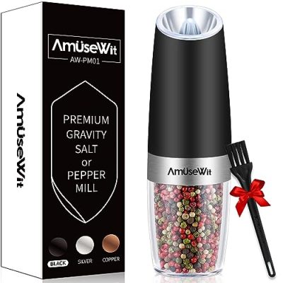 The Electric Gravity Pepper Mill or Salt Grinder Mill by AmuseWit offers a convenient and stylish way to season your food. With its one-handed operation and gravity activation, simply turn the mill upside down to get fresh ground salt or pepper. The mill features a bright white LED light, making it easy to see how much seasoning is coming out. The ceramic grinder ensures freshness and healthiness, while the modern matte black design adds a touch of elegance to any table or countertop. The refillable container holds a generous amount of salt and pepper, eliminating the need for frequent refills. Additionally, the mill comes with a cleaning brush for easy maintenance. With a satisfaction guarantee and a money-back guarantee, the Electric Gravity Pepper Mill or Salt Grinder Mill is a risk-free purchase. Score: 8.5/10.