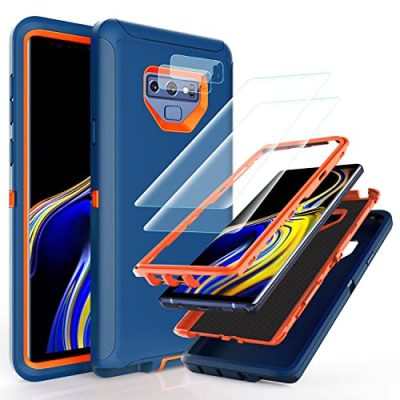 The YmhxcY Note 9 Case offers heavy protection and comes with self-healing flexible TPU film and camera lens screen protective film. The triple-layer defense of this case ensures durability and protection from drops, scratches, bumps, and shocks. It features a unique detachable design and provides shockproof, dust protection, scratch protection, and drop protection. The port covers keep out dust and debris, and the raised beveled edge keeps your touchscreen safe. The case also supports wireless charging and offers precise cutouts for easy access to all ports, cameras, speakers, and other functions. The YmhxcY Note 9 Case is available in a stylish blue and orange color.