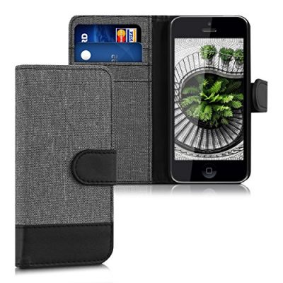 The kwmobile Wallet Case is a stylish and functional phone flip cover compatible with Apple iPhone 5C. Made from textile cloth and synthetic leather, it offers all-round protection for your phone. The card slots allow you to conveniently store your ATM, credit, insurance cards, and cash. The strong magnet closure keeps everything securely in place. This case also doubles as a stand, allowing you to prop up your phone in landscape view for comfortable video watching. The grey and black design adds a touch of sophistication to your phone. Slim and well-made, this wallet case is a great buy at a reasonable price.