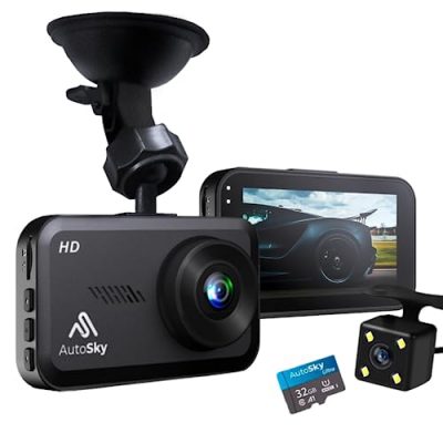 The AutoSky Dash Cam Front and Rear is a sleek and compact dash camera that provides full HD recording for your car. It comes with a 1080P front camera and a waterproof HD 720P rear camera, allowing you to capture both the front and back of your vehicle. The 3-inch IPS display provides vivid and clear video playback. The dash cam includes a 32GB memory card, eliminating the need for an additional purchase. Its plug and play design makes it easy to install and use. The loop recording function ensures that the newest video overwrites the oldest when the memory card is full. It also features an accident lock and motion detection. With professional support available 24/7, this dash cam is a reliable choice for increased safety and recording of your car journeys.