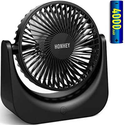 Stay cool and comfortable with the HonHey 6 Inch Desk Fan. This portable fan features a 4000mAh rechargeable battery for indoor and outdoor use. With 3 adjustable speeds and a 120° rotation, you can customize the airflow to your liking. The compact size and lightweight design make it perfect for office desks, bedrooms, or even travel. It also makes a great gift for friends and family. With a sleek black color and durable construction, this desk fan is both stylish and functional. Enjoy cool breezes and quiet operation with the HonHey 6 Inch Desk Fan.