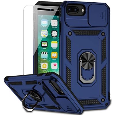 The for iPhone 8 Plus / iPhone 7 Plus / iPhone 6 Plus Case with Camera Lens Cover HD Screen Protector offers a durable and delicate phone case designed for Apple iPhone 8 Plus, iPhone 7 Plus, iPhone 6s Plus, and iPhone 6 Plus. It features military-grade drop protection, a sliding camera cover, and an HD screen protector for comprehensive protection. The case also includes a magnetic ring kickstand for convenient viewing and a metal patch for easy attachment to a magnetic car mount. With precise cutouts and a stylish navy blue design, this case provides both style and functionality. Please note that the case is not compatible with wireless charging. Warranty service is available. Overall, the case has received positive reviews and a customer rating of 4.7/5.