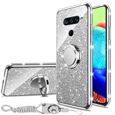 The nancheng Phone Case for LG V40 ThinQ is a stylish and practical accessory for your smartphone. It is designed with a unique ring kickstand that allows for 360-degree rotating and 180-degree folding, providing hands-free use from any angle. The case features a luxuriously shiny design with a layer of glitter paper that stays sparkly and avoids smudging. With precision cutouts for all ports, the slim and fashionable case maximizes the functionality of your LG V40 ThinQ. Additionally, it comes with a neck lanyard as a gift. The case is ultra-thin and made of smooth material, giving it a comfortable touch. With its pretty and luxury appearance, it makes for a special gift for girls, women, and your family.