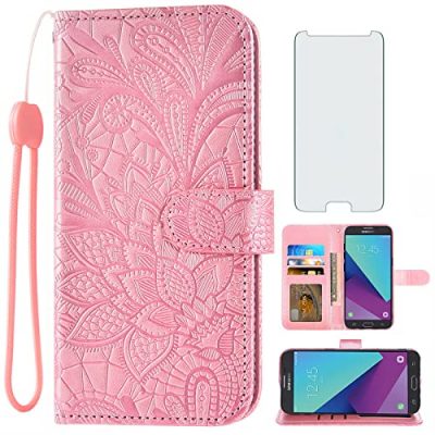 The Asuwish Phone Case for Samsung Galaxy J7 Prime 2017 is a stylish and functional phone case designed specifically for the Samsung J7 series. It comes with a tempered glass screen protector and a detachable wrist strap for convenience. The case features a hidden card slot that can securely hold up to 3 cards and some cash. It is made of premium synthetic leather with a beautiful lace embossed flowers design, providing dual-layer protection. Additionally, the case can be converted into a kickstand, allowing for hands-free video calls and media viewing. With excellent after-sales service, this phone case is a great buy for those looking for both style and functionality.