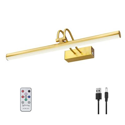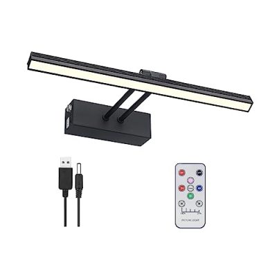 The RAIFOOLLY Picture Light is a 16in battery operated art light designed to illuminate paintings, portraits, and dartboards. Made of full metal, this rechargeable picture light has a sleek brass finish and comes with a remote control for easy brightness adjustment. It features a built-in timer function to automatically turn off the light, and its rotatable design allows for flexible lighting direction. The installation is hassle-free, with screws included. With a 4.5/5 customer rating, customers love the beautiful appearance, bright light, and easy setup. However, some have experienced issues with battery charging and durability. Overall, the RAIFOOLLY Picture Light offers a stylish and convenient solution for highlighting your wall artworks and creating a cozy ambiance.