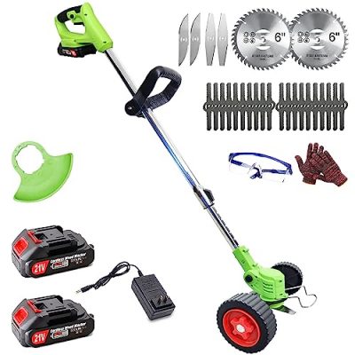 The Weed Eater Battery Powered Weed Wacker with Blades is a versatile and portable tool for keeping your lawn free of weeds. With its lightweight design and foldable feature, it is easy to use and transport. The product comes with 3 types of blades and 2Pcs Li-Ion Batteries, providing convenience and efficiency in trimming grass and cutting weeds. While the wheels may not perform as expected, customers are generally satisfied with the product's performance and affordability. The battery lasts around 45 minutes with heavy weed cutting. However, some customers have reported issues with the product breaking easily and unclear instructions. Overall, the Weed Eater Battery Powered Weed Wacker with Blades is a decent option for those on a budget looking for a portable and efficient tool for their lawn maintenance needs.