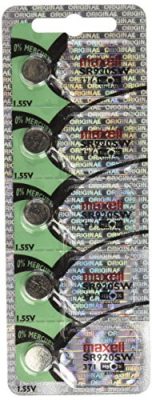 The Maxell SR920SW Watch Battery Button Cell 371 is a pack of 5 batteries that provide a new life for your watch. The batteries have a 1.55 Volt nominal voltage and are designed to be lightweight and have stable discharge. They also feature leakage resistance, ensuring long-lasting performance. The batteries come in a blister package with original hologram packaging. With positive customer ratings and reviews, these Maxell batteries are a reliable choice for your watch.