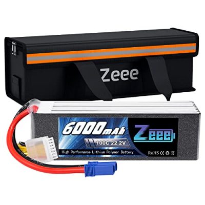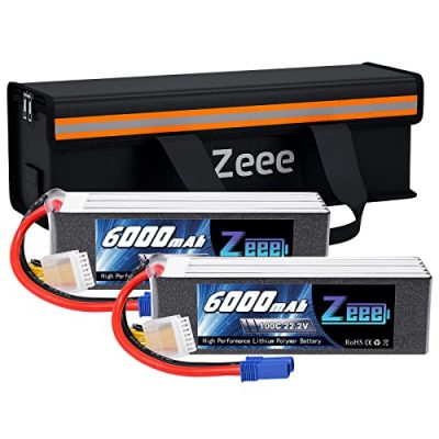 The Zeee 6S Lipo Battery is a high-capacity battery with a soft case and an EC5 connector. It has a voltage of 22.2V and a capacity of 6000mAh, making it ideal for various applications. The battery is designed for safety with an explosionproof bag made of fireproof fabric and PVC fiber outer layer. It also has a high discharge rate of 100C. The package includes two batteries and one lipo safe bag. The batteries have a compact size and weigh 833g. If you have any product problems, you can contact the seller for assistance.