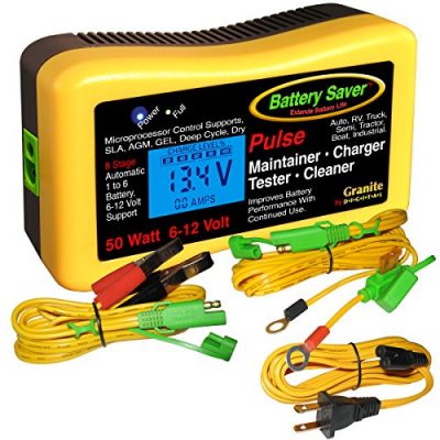 The Battery Saver 2365-lcd Battery Charger, Maintainer, Pulse Cleaner and Tester is a versatile device designed to quickly charge larger vehicles. It can charge up to six batteries in parallel, making it perfect for automotive enthusiasts or professionals. The pulse cleaning mode helps improve battery condition with continued use, ensuring longevity and optimal performance. The charger automatically works with both 6 and 12 volt batteries, making it suitable for a wide range of vehicles. It also features a built-in LCD digital battery tester that displays essential information, including battery voltage, amp output, and battery charge percentage. Though some users experienced warmth during use and it does not come with a standard case, the device is highly rated for its effectiveness and ease of use.