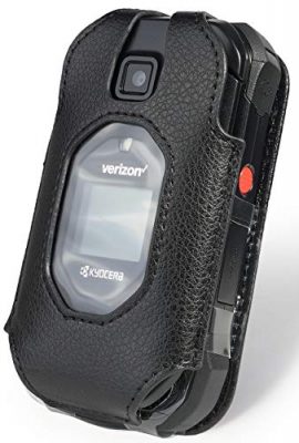 The Nakedcellphone Fitted Series provides a form-fitting protective case made specifically for the Kyocera DuraXV Extreme, DuraXE Epic, and DuraXA Equip flip phones. This case comes in black vegan leather material with a matte texture, offering an enhanced tactile grip. It features a built-in screen protector and a metal belt clip, allowing you to securely attach your phone to your belt or waistband. The plastic vinyl layer offers protection for the screen and keypad, ensuring your phone remains fully functional in the case with access to all ports. The case dimensions are 1.80Lx4.06Wx5.83H, and it comes in black color. Overall, it provides a snug fit and convenient features for a reasonable price.