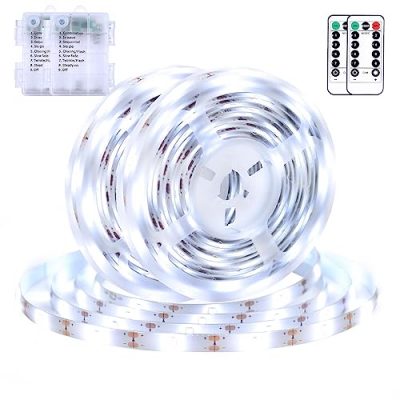 The White Led Strip Lights are battery powered and come in a pack of two. With a length of 9.8 feet, these waterproof LED strip lights are perfect for both indoor and outdoor decoration. Whether you want to add a cozy ambiance to your bedroom or illuminate your garden, these lights are versatile and easy to install. Simply peel off the double-sided tape and stick them wherever you desire. The LED lights operate on low heat, making them safe for everyone. The included remote controller allows you to adjust the brightness, choose from 8 lighting modes, and even set a timer. With a cool white color and a customer rating of 4.7/5, these LED strip lights are a great addition to any space.