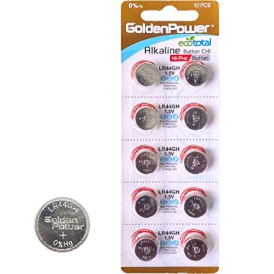 The GoldenPower LR44GH Alkaline Button Cell 1.5V Battery is a high-performance, leak-proof battery that offers long-lasting power for various devices. With 0% mercury, lead, and cadmium, it is safe to dispose of with domestic waste. These LR44GH batteries provide higher leak protection compared to regular LR44 batteries, ensuring reliable performance and durability. They have undergone strict quality control standards and are ROHS Certified. The 10-count blister pack conveniently provides an ample supply of batteries. The GoldenPower LR44GH batteries are produced using state-of-the-art technology, resulting in a high leak-proof performance and extended service life. Their affordable price, positive customer reviews, and environmentally-friendly design make them an excellent choice for powering devices in a reliable and sustainable manner.
