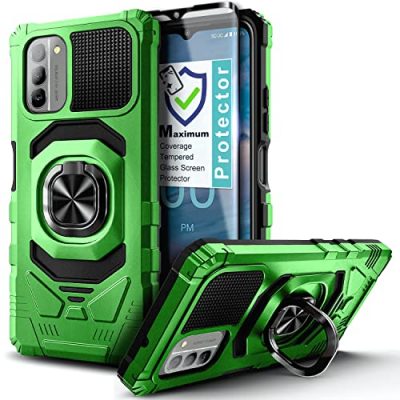 The NZND Compatible with Nokia G100 Case is a reliable and durable protective cover for your Nokia G100. It offers military-grade protection with its shock absorbent materials and reinforced corners. The built-in magnetic ring holder adds versatility, serving as a finger holder or stand, and is compatible with a magnetic car mount. Precise cut openings allow for easy access to buttons and ports, while the raised bezel protects the camera from scratches. The case comes in a vibrant green color and includes a tempered glass screen protector. With NZND Industries Inc’s professional shipping and services, you can trust in their commitment to your satisfaction. Overall, this case provides excellent value and protection for your Nokia G100.