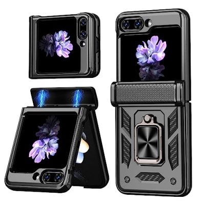 The Samsung Galaxy Z Flip 5 5G Case is a heavy-duty protective phone case designed specifically for the Samsung Galaxy Z Flip 5. It offers full hinge protection with a textured surface for a better grip and to prevent slipping. The case also features a slidable camera cover for privacy and double protection for the camera. Made of high-quality tough PC material, it provides excellent protection against heavy falls and shocks. Additionally, it includes a rotatable ring kickstand for hands-free use and is compatible with magnetic car mounts. Please note that the case does not support wireless charging. Overall, it is a reliable and durable phone case that offers great protection for your Samsung Galaxy Z Flip 5.